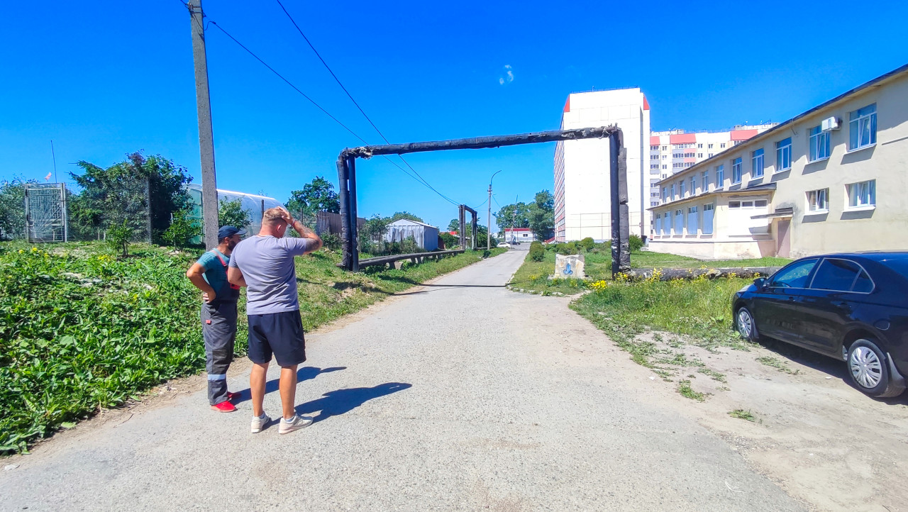 городской пейзаж городские улицы дороги дома улица городская среда город городской вид городская улица городская инфраструктура городской ландшафт урбанистика городская атмосфера уличное пространство дорога проезд мужчины люди осмотр обсуждение обследование инфраструктура инженерные коммуникации трубопровод теплотрасса надземный трубопровод рамная эстакада опоры ограждение зелёная зона кусты трава длинное здание парковка автомобиль лето солнечный день синее небо ремонтные работыПохожие фотографии
