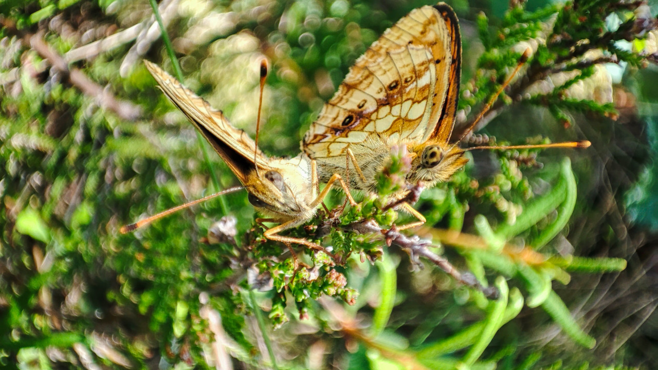 природа насекомые животный мир растения дикая природа биология энтомология биоразнообразие бабочка бабочки чешуекрылые макросъемка крупный план пара крылья бабочки рисунок крыльев светлые крылья оранжевые оттенки тёмные пятна усики опушение лапки опылители лето июнь 2024 луг мох кустарничек зелёные побеги естественная среда дикая фаунаПохожие фотографии