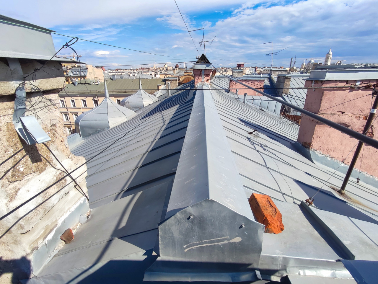 крыша кровля металлическая кровля фальцевая кровля ремонт кровли город строительство конёк крыши листовой металл швы фальца дымоходы вентиляционные каналы молниезащита кабель провода антенны доборные элементы стыки примыкания крепёж утяжелитель кирпич высотные работы городская панорама архитектурный силуэт облачное небо дневной свет эксплуатация зданияПохожие фотографии