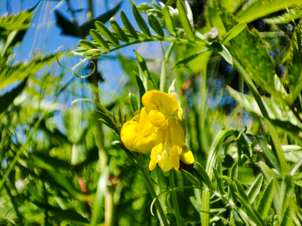природа растения флора дикорастущие растения цветение цветы ботаника растение цветок желтый цветок полевые растения бобовое растение бобовый цветок луговая трава заросли стебли листья усики зелень луг низкая точка съемки голубое небо солнечный день лето естественная среда дикая природа ветер размытое движение вертикальный кадр природная текстура фон для рекламыПохожие фотографии