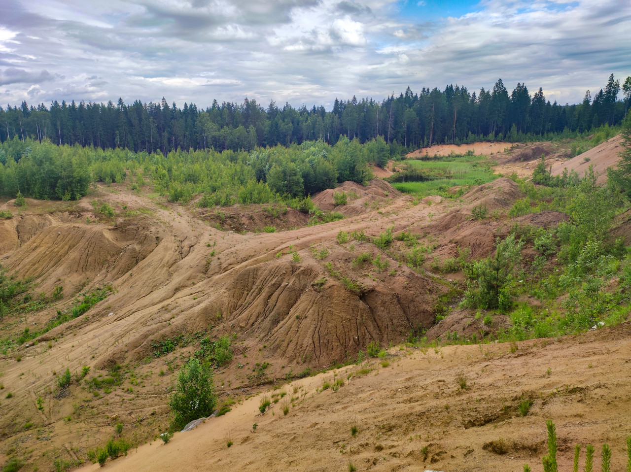 природа открытый воздух естественная среда природная зона природный ландшафт пейзаж ландшафтная фотография растительность лес деревья небо ландшафт песчаные склоны рельеф эрозия почвы промоины овраги песок грунтовая дорога колея карьер песчаный карьер насыпь техногенный ландшафт зарастание молодая поросль кусты трава болотина низина смешанный лес облака пасмурная погода геология рекультивация экология природные процессыПохожие фотографии
