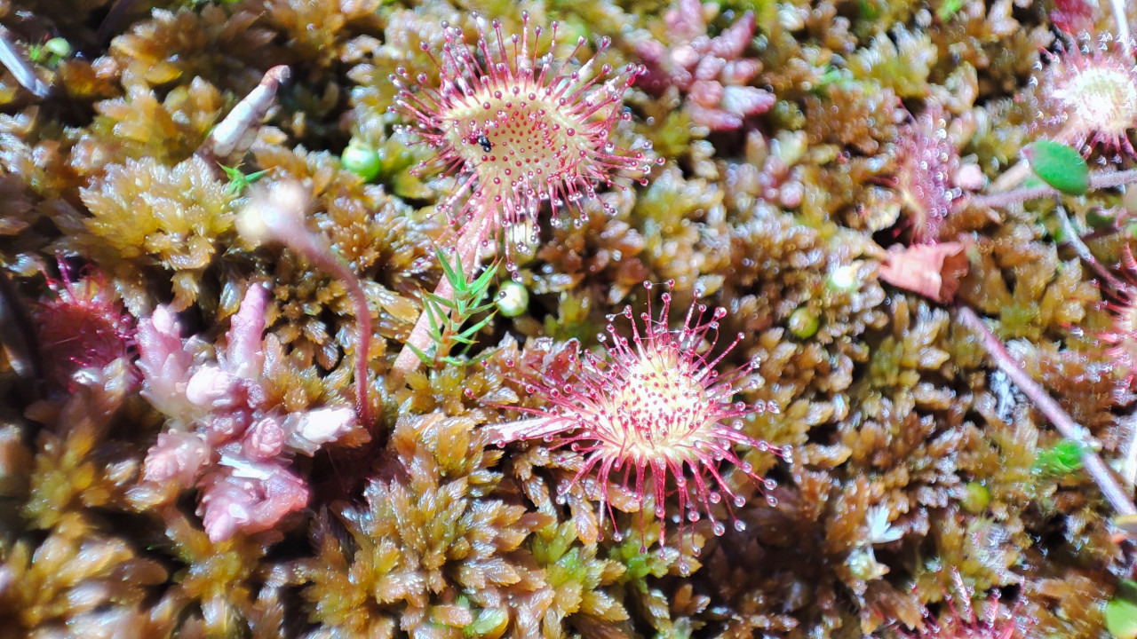 природа растения флора растительность ботаника экология природный фон натуральный фон лето болото сфагнум мох росянка хищные растения насекомоядные растения макро крупный план ловушка ловчие волоски клейкие капли красноватые листья болотная растительность биоразнообразие микромир влажная среда текстура мха полевые исследования дневной свет естественный фон редкий вид растениеПохожие фотографии