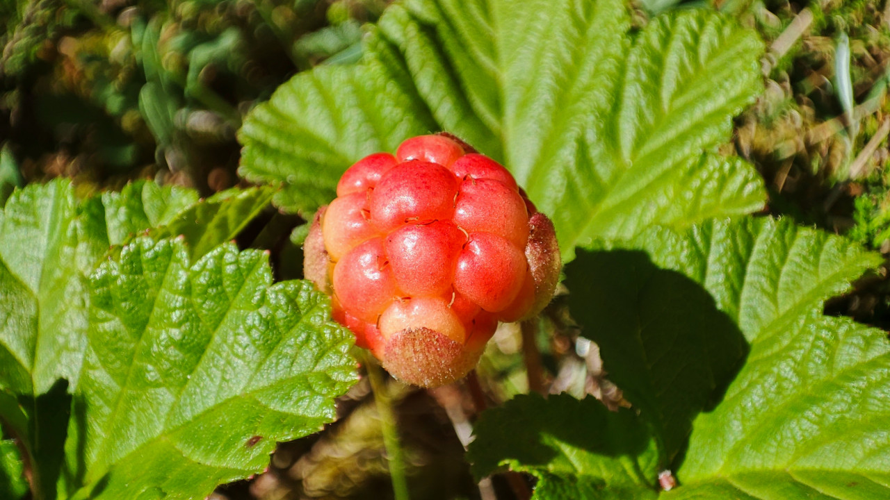 природа растения флора ягоды дикоросы съедобные растения листья ботаника лес дикие ягоды морошка Rubus chamaemorus недозрелая ягода макросъемка крупный план листва зеленые листья жилки листа текстура солнечный свет лето июнь сезон сбор ягод северные ягоды витаминная ягода натуральные продукты экология фон бокеПохожие фотографии