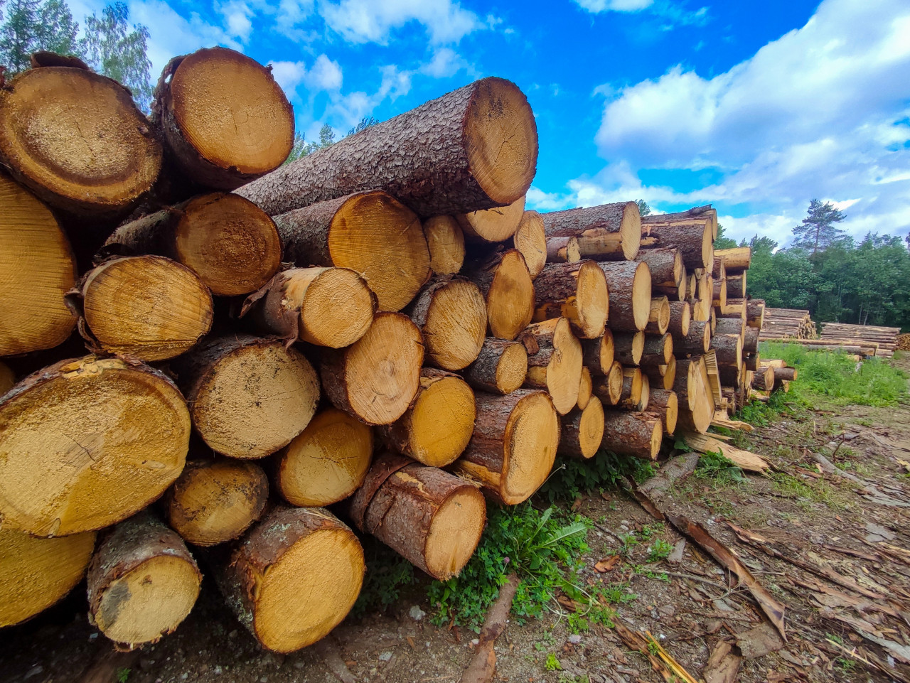 промышленность лесная промышленность лес древесина дерево лесоматериалы сырьё бревна кругляк штабель склад древесины лесозаготовка деревообработка природа склад леса хранение заготовка леса лесоповал круглый лес торец распил кора щепа промышленная площадка производство поставки логистика лесная зона трава облака небо широкий угол природные ресурсы экономикаПохожие фотографии