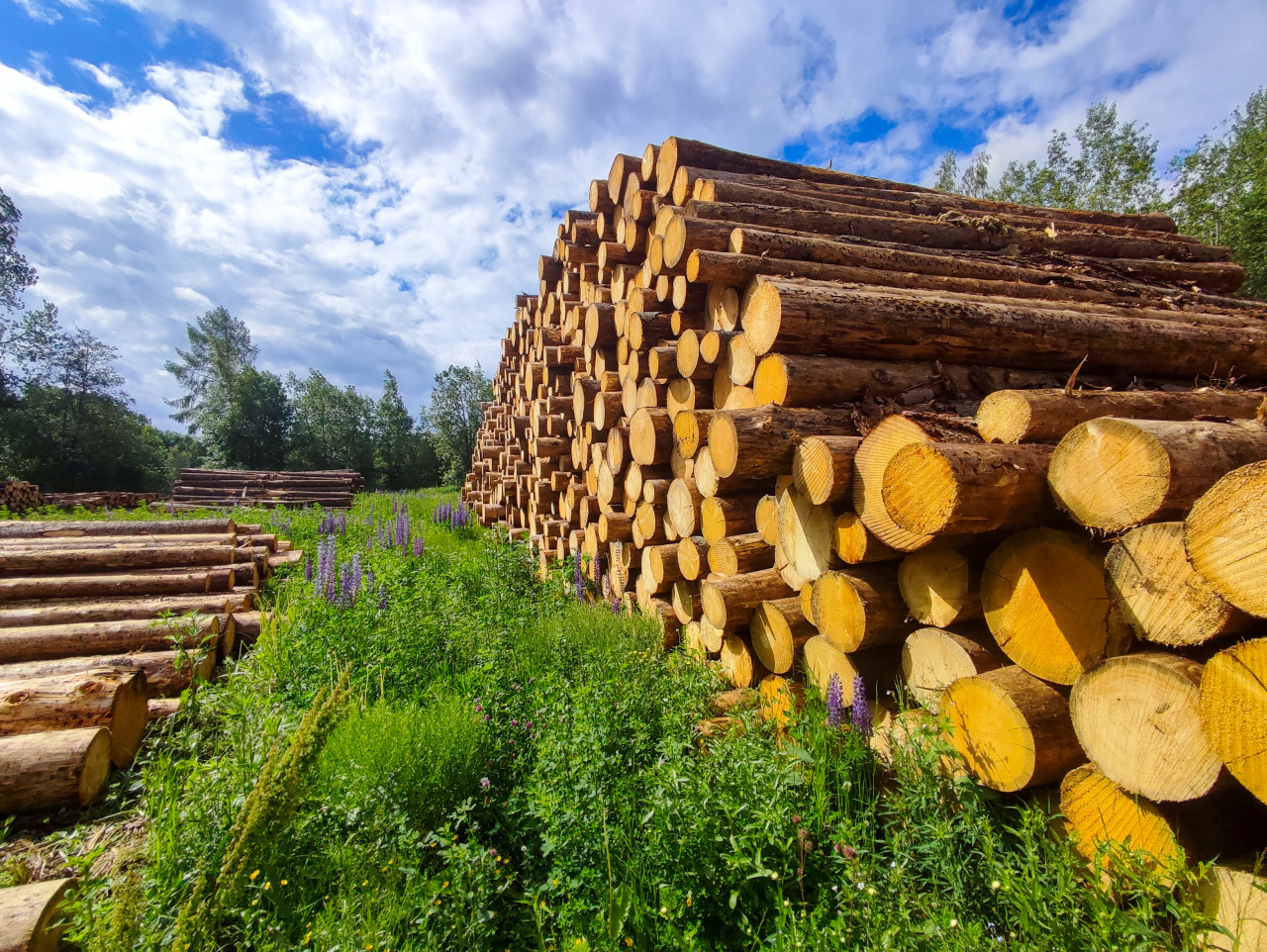 промышленность лесная промышленность лес древесина дерево лесоматериалы сырьё бревна кругляк штабель склад древесины лесозаготовка деревообработка природа круглый лес штабель бревен складирование хранение древесины лесоповал производство торцы бревен структура древесины кора луг зеленая трава полевые цветы фиолетовые цветы лесная опушка облачное небо синее небо перспектива логистика природные ресурсыПохожие фотографии