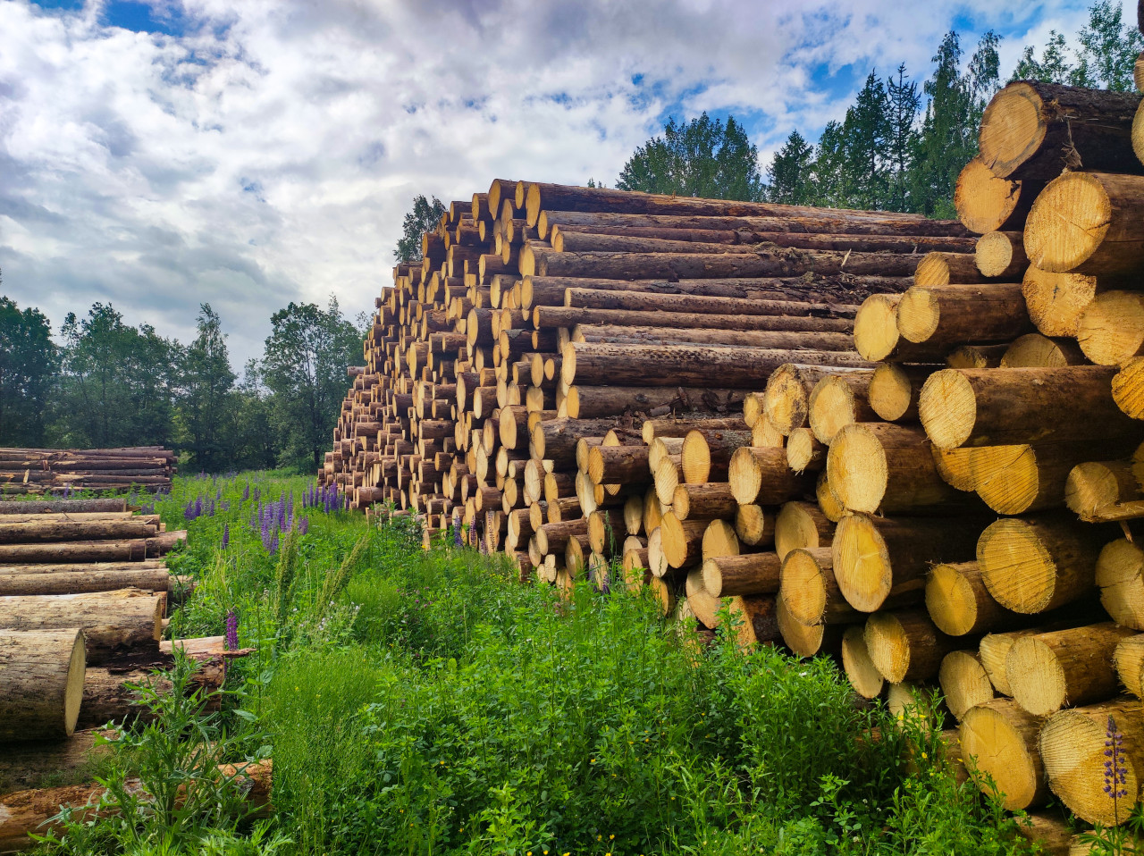 промышленность лесная промышленность лес древесина дерево лесоматериалы сырьё бревна кругляк штабель склад древесины лесозаготовка деревообработка природа штабеля бревен склад леса лесоповал природные ресурсы производство хранение круглый лес торцы бревен кора лесная площадка зеленая трава полевые цветы фиолетовые цветы летний пейзаж облачное небо лесная опушка экология ландшафт заготовка лесаПохожие фотографии