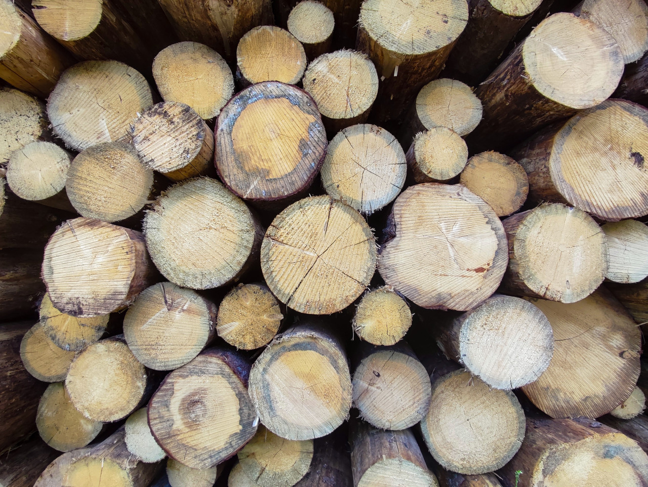 Торцы свежеспиленных брёвен в штабеле на лесозаготовительной площадке