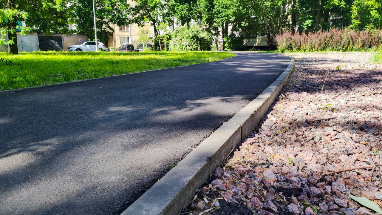 благоустройство благоустройство территории стройплощадка строительная площадка строительные работы строительство строительный участок город двор жилой квартал городская среда пешеходная дорожка тротуар асфальт асфальтовая дорожка бордюр бордюрный камень высокий бордюр поворот изогнутая дорожка газон трава деревья тени солнечный день озеленение ландшафтный дизайн каменная отсыпка декоративный щебень посадки кустарники дворовая территория парковка автомобили на фоне комфортная среда реконструкция двораПохожие фотографии