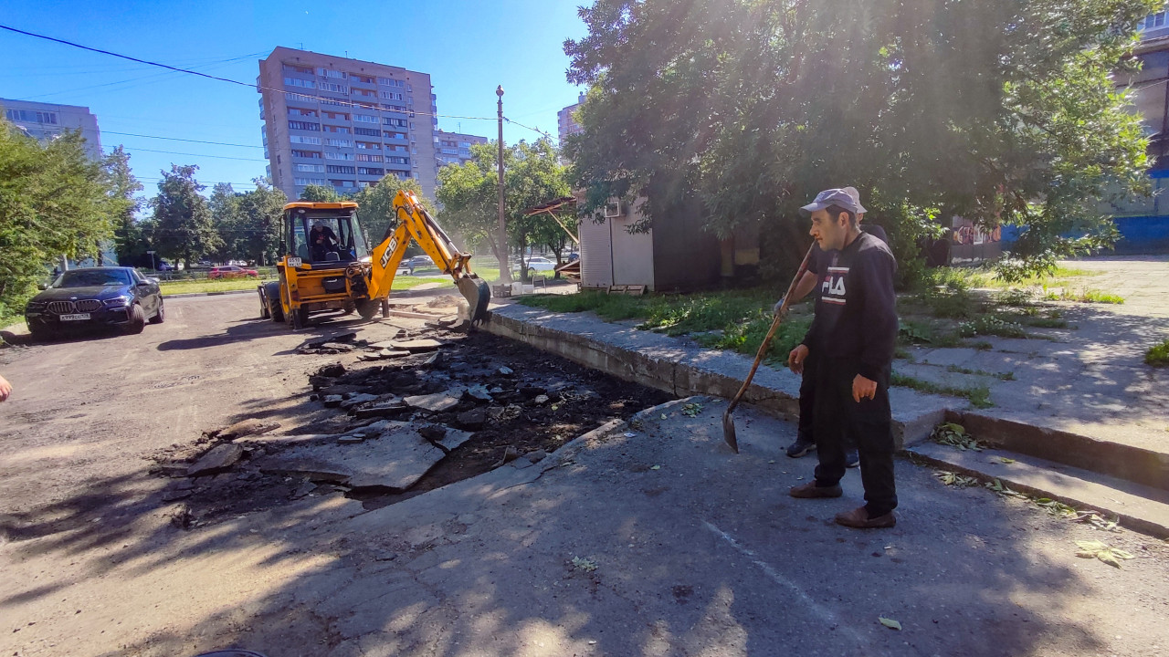 дорога дороги дорожные работы инфраструктура строительные работы строительство строительство дорог город двор ремонт благоустройство демонтаж асфальта снятие покрытия обломки асфальта асфальтовая крошка экскаватор погрузчик ковш спецтехника рабочие двое рабочих лопата ручной инструмент контроль работ организация работ бордюр кромка дороги подготовка основания ремонт проезда коммунальные службы подрядчик солнечный день лето блики многоэтажные дома жилой кварталПохожие фотографии