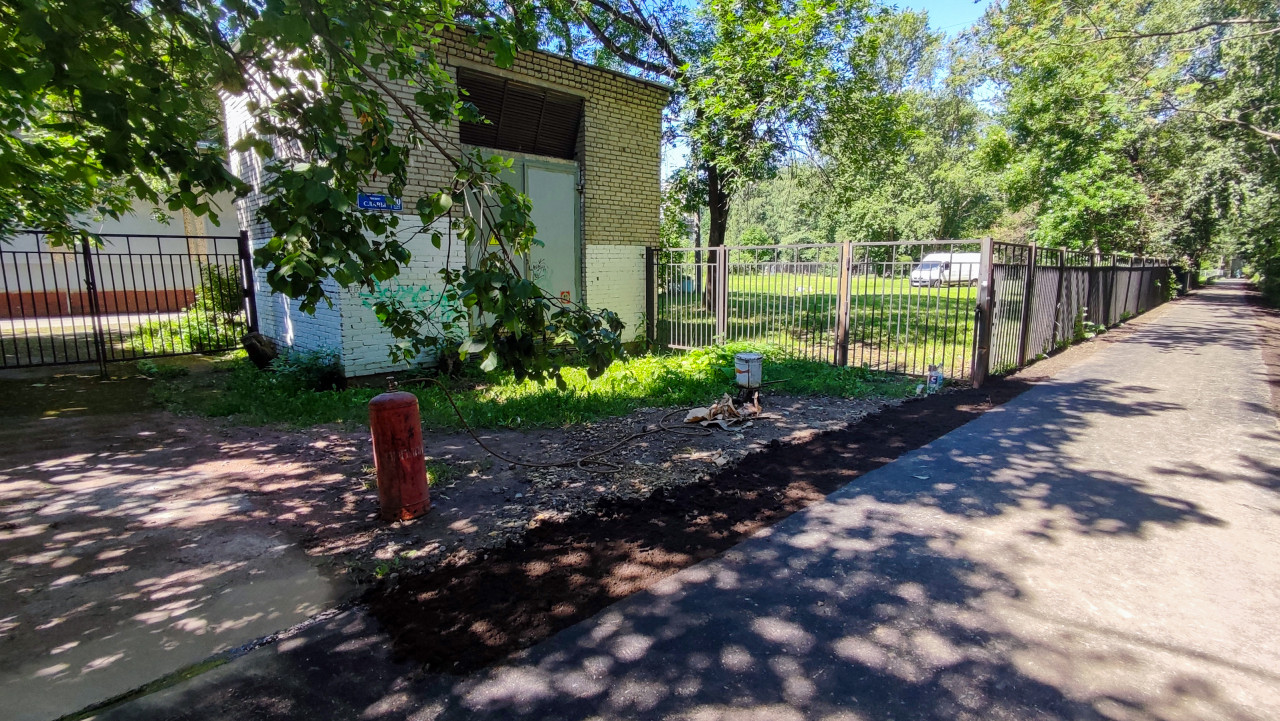 Ремонт тротуара и асфальта у забора рядом с техническим зданием