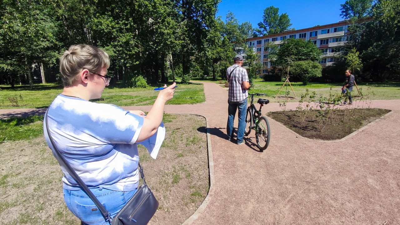 городская среда инфраструктура благоустройство ремонт строительство строительные работы контроль качества проверка документация люди человек рабочий город двор парк зелёная зона пешеходная дорожка тротуар бордюр новая дорожка озеленение посадка деревьев саженцы кустарники клумба проект план работ согласование общественный контроль инспекция жители велосипед лето солнечная погода жилой дом городская инфраструктураПохожие фотографии