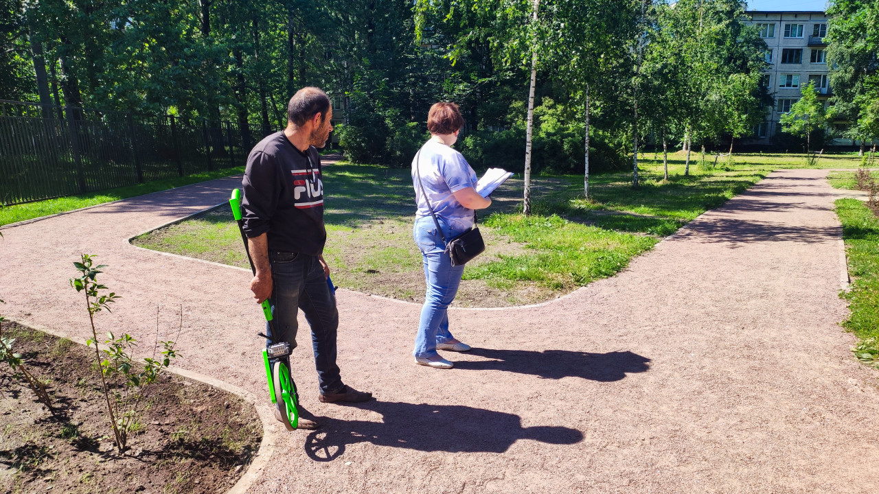 городская среда инфраструктура благоустройство ремонт строительство строительные работы контроль качества проверка документация люди человек рабочий город двор сквер приёмка работ осмотр измерение измерительное колесо дорожка тротуар бордюр новое покрытие документы женщина общественный контроль озеленение кусты клумба берёзы деревья газон жилой дом многоквартирный дом лето солнечный деньПохожие фотографии
