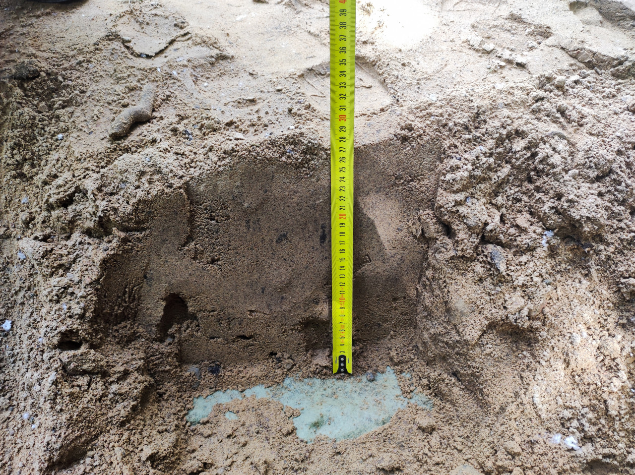 рулетка линейка измерение размеры сантиметры измерения измерительные работы обмеры замеры исследование качество контроль контроль качества проверка качества оценка качества экспертиза строительство благоустройство ремонт измерительный инструмент контроль толщины глубина выемки песок песчаное основание подготовка основания тротуарные работы дорожные работы земляные работы выравнивание уплотнение планировка технология укладки строительная документация техкарта инженерный контроль измерения на объекте зернистая текстура включения грунта стройплощадка ремонт двора подготовка покрытия инфраструктураПохожие фотографии