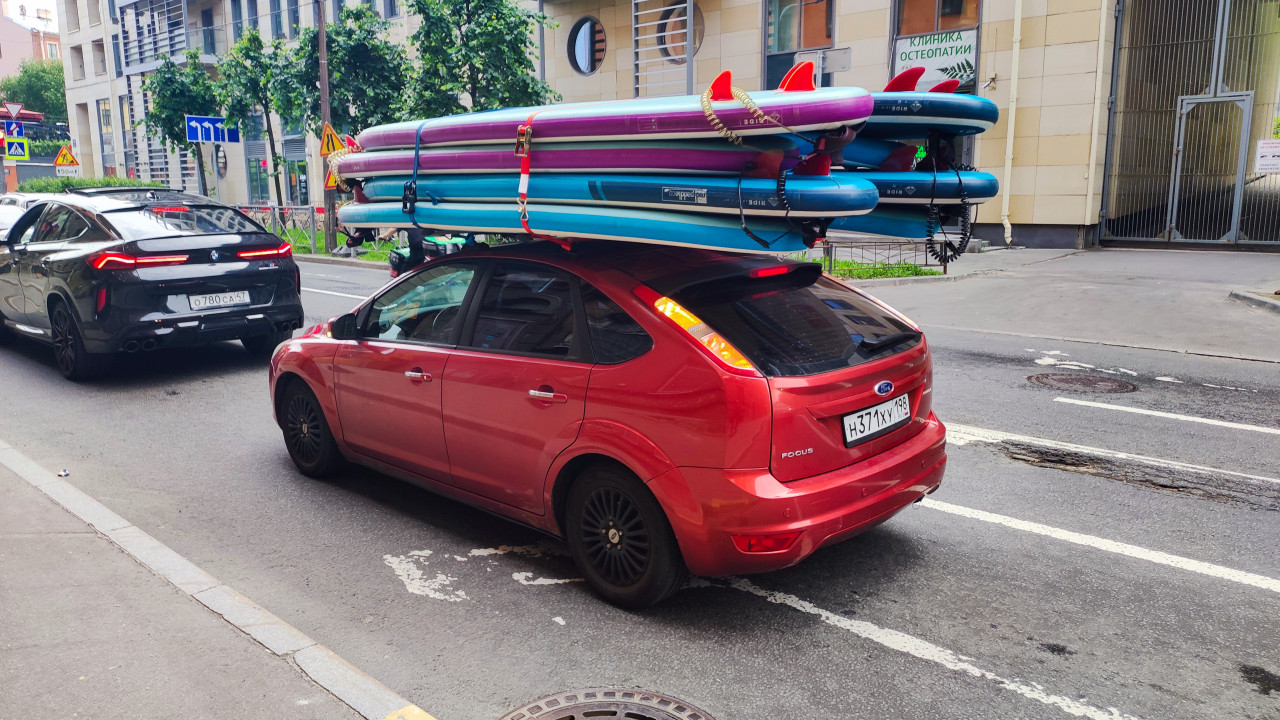 автомобиль легковой автомобиль легковушка машина транспорт авто городской транспорт автотранспорт личный транспорт транспортное средство автомашина город хэтчбек Ford Ford Focus перевозка перевозка груза груз на крыше багажник на крыше крепежные ремни SUP сапборд надувные доски водный спорт спортивное снаряжение городская улица трафик разметка асфальт люк дорожные знаки ограждение современное здание фасад Клиника остеопатии Санкт Петербург поездка активный отдыхПохожие фотографии