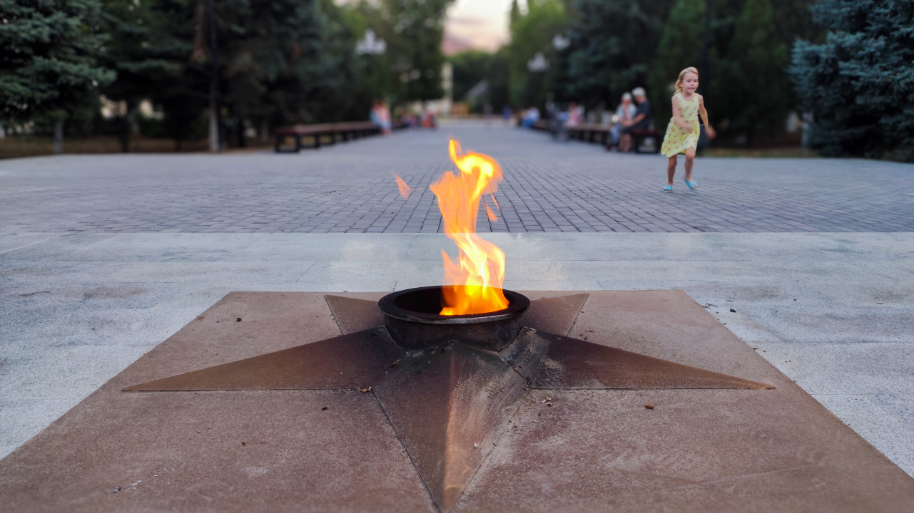 россия город городская среда общественное пространство площадь парк сквер памятник монумент историческое наследие советское наследие история память культура памяти достопримечательность Россия Кабардино Балкария Прохладный аллея мемориал Вечный огонь огонь пламя звезда пятиконечная звезда каменная площадка вечер сумерки лавочки люди ребёнок девочка прогулка глубина резкости боке военная история Великая Отечественная война Вторая мировая война памятные даты День Победы патриотизмПохожие фотографии