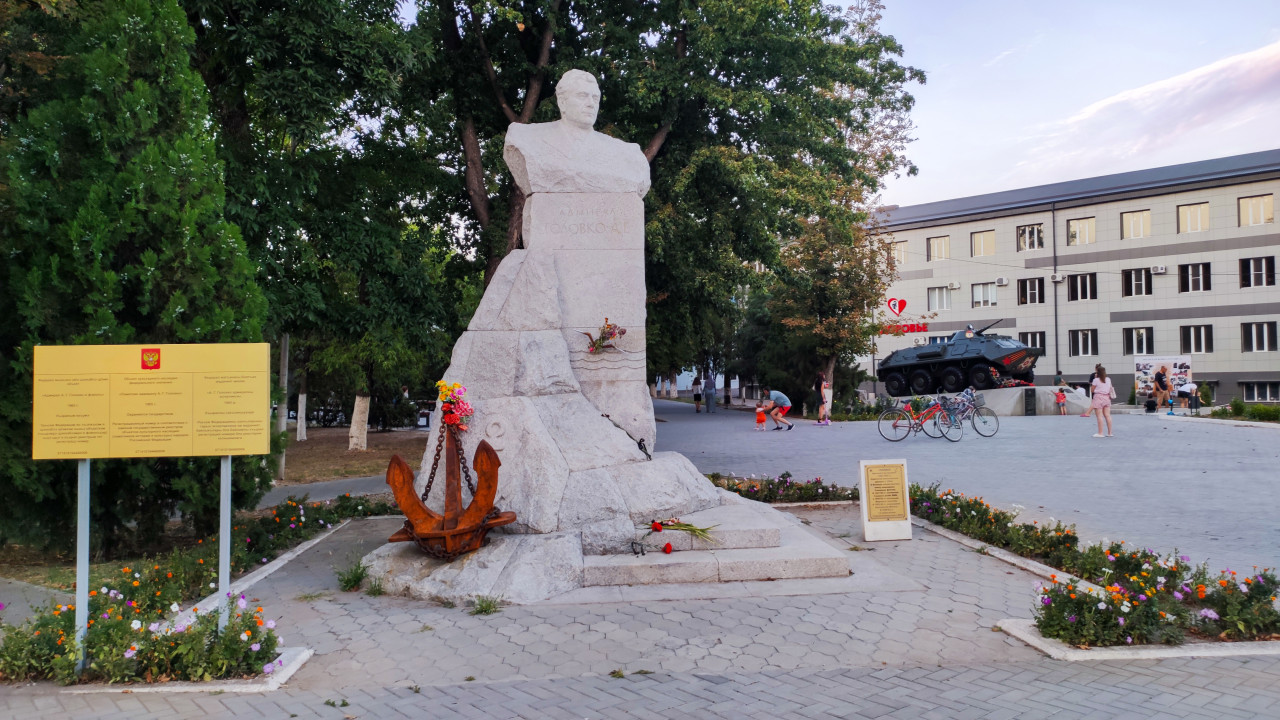 Мемориальная зона Сквера Памяти с памятником адмиралу Головко и стендами биографий