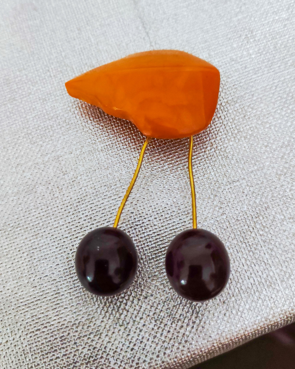 предмет украшение бижутерия брошь аксессуар вишня ягоды декоративный элемент ручная работа handmade хендмейд полимерная глина пластик бусины глянец минимализм дизайн модные аксессуары женские украшения крупный план макросъёмка текстиль ткань фактура стиль сувенир подарок творческий проектПохожие фотографии