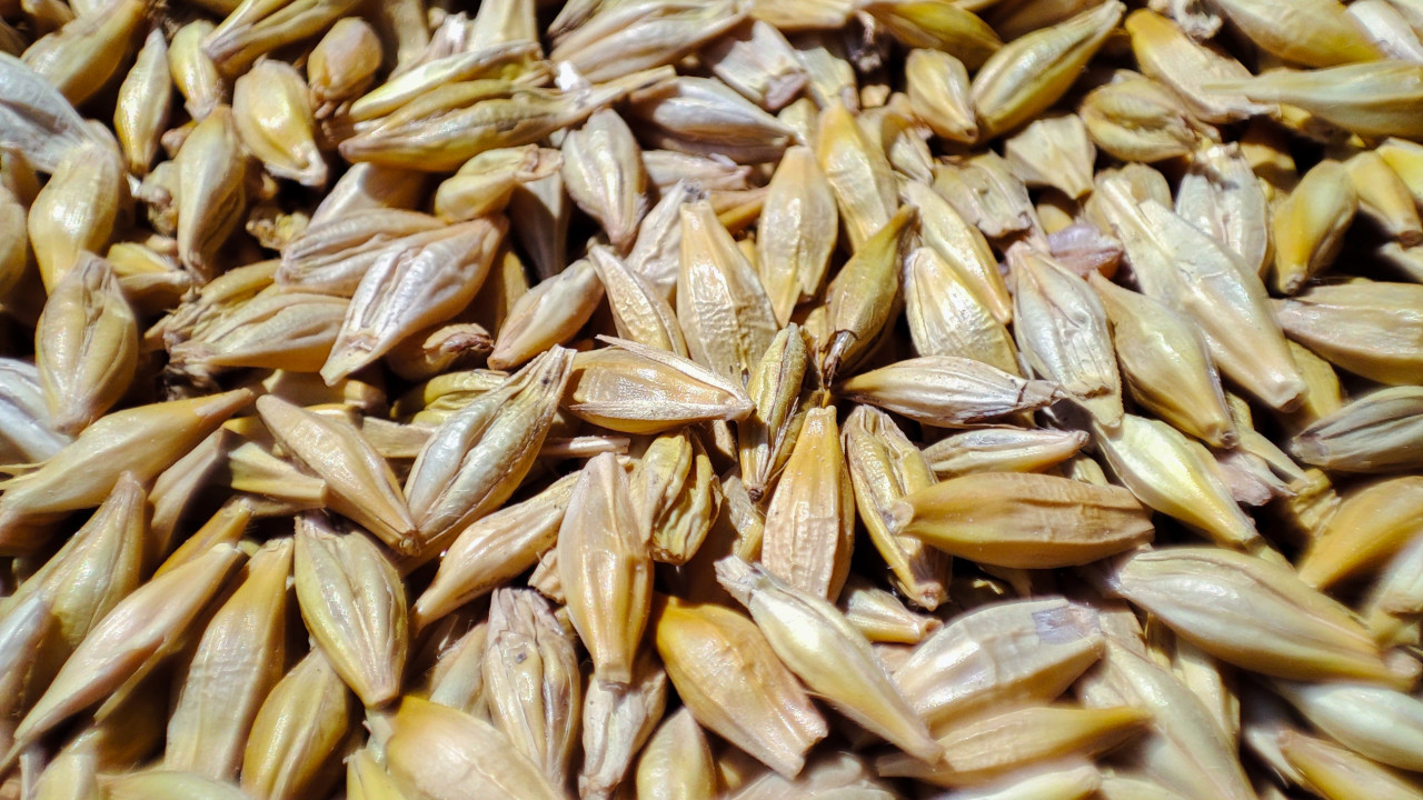 Макросъёмка показывает отдельные зёрна ячменя очень близко: видны продольные бороздки, оболочки, небольшие сколы и естественные блики на поверхности. Из-за малого расстояния фокус выделяет центральную часть россыпи, а края мягко размываются, что подчёркивает фактуру и материальность сырья. Такой кадр полезен для тем о контроле качества урожая, анализе зерна, хранении и переработке, производстве кормов и пищевого сырья. Подойдёт для аграрных статей, учебных материалов, презентаций лабораторий, иллюстраций к новостям о рынке зерновых и фоновых изображений.