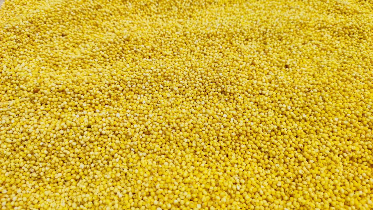 сельское хозяйство еда продукты зерно злаки урожай аграрная продукция сырьё натуральный продукт хранение производство переработка текстура крупа пшено просо злак сыпучий продукт сухие продукты ингредиенты питание здоровое питание каша крупяные изделия желтый цвет фон поверхность россыпь макросъёмка крупный план зернистость пищевые запасыПохожие фотографии