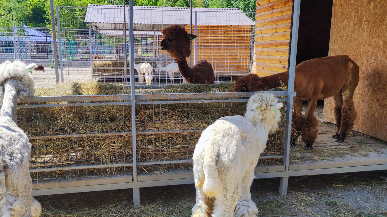природа животные животный мир фауна зоология биология охрана животных среда обитания содержание животных уход за животными зоопарк нальчик млекопитающие альпака лама ферма миниферма контактный зоопарк сельское хозяйство животноводство загон вольер кормушка сено кормление стрижка шерсти шерсть деревянный домик укрытие сетчатое ограждение солнечный день лето двор фермы сельская местность экскурсия семейный отдых фермерский туризм домашние животныеПохожие фотографии