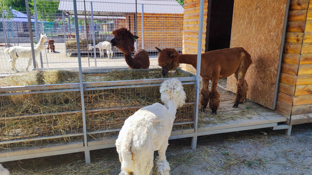 природа животные животный мир фауна зоология биология охрана животных среда обитания содержание животных уход за животными зоопарк нальчик альпака лама ферма миниферма контактный зоопарк загон вольер сетка кормушка сено корм кормление уход шерсть стриженная шерсть сельское хозяйство животноводство деревянный домик укрытие солнечный день лето экскурсия семейный отдых фермерский туризм сельская жизнь домашние животныеПохожие фотографии