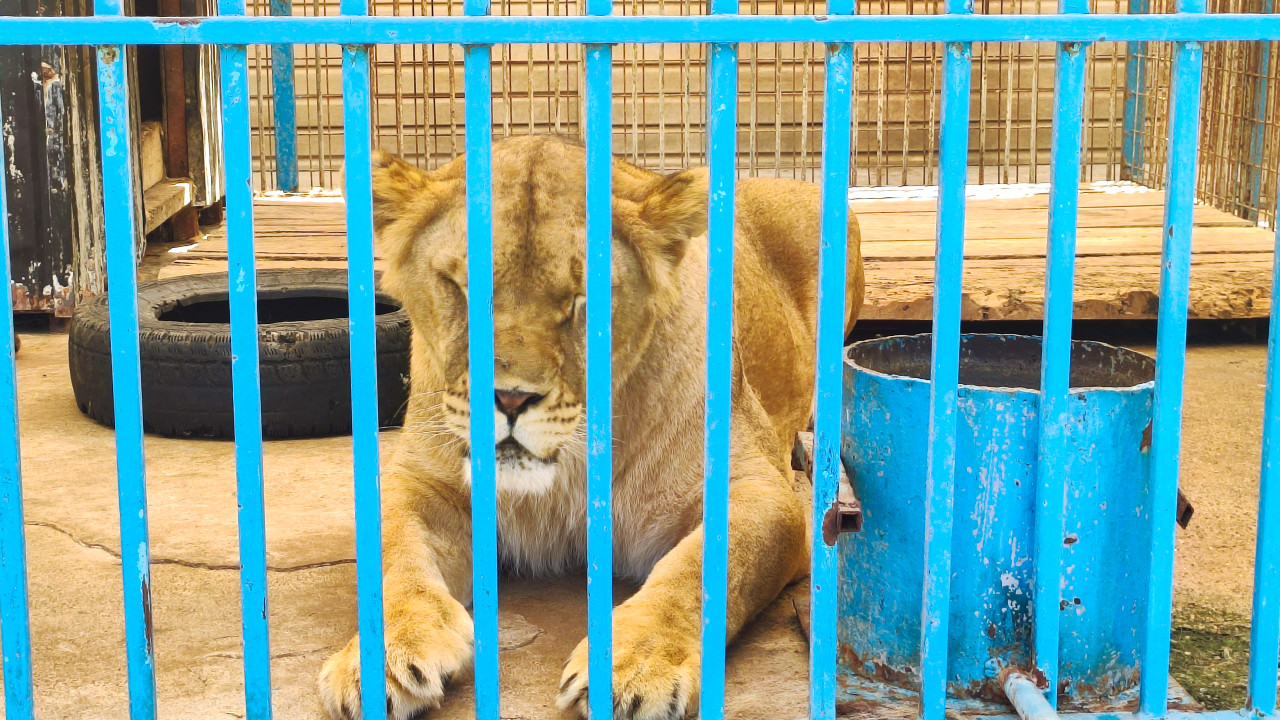 природа животные животный мир фауна зоология биология охрана животных среда обитания содержание животных уход за животными зоопарк нальчик дикие животные хищник кошачьи лев львица вольер клетка решётка синие прутья отдых сон поведение животных спокойствие бетонный пол поилка кормушка облупившаяся краска шина деревянный настил условия содержания безопасность инфраструктура зоопарка экскурсия туризм наблюдениеПохожие фотографии