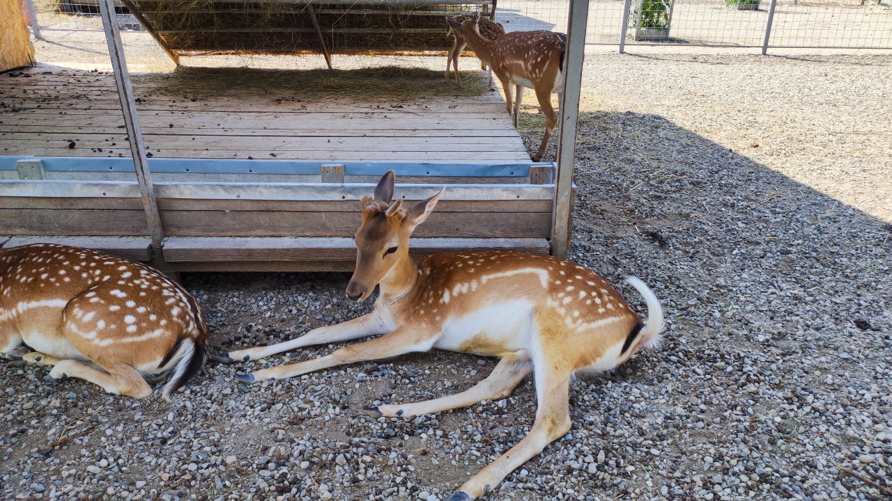 природа животные животный мир фауна зоология биология охрана животных среда обитания содержание животных уход за животными зоопарк нальчик дикие животные олень пятнистый олень копытные отдых лежит стадо вольер загон контактный зоопарк зооферма гравий тень навес деревянный настил сенник кормушка сено кормление поведение животных лето солнечный день инфраструктура ограждение сетка фермерствоПохожие фотографии