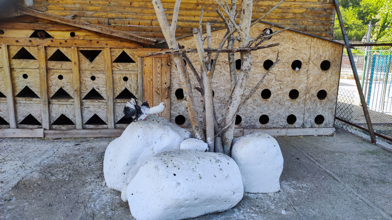 природа животные животный мир фауна зоология биология охрана животных среда обитания содержание животных уход за животными зоопарк нальчик птицы голубь голуби голубятня птичий домик вольер птичий вольер птицеводство домашние птицы декоративная порода хвост веером перья насест ветки деревянная постройка гнёзда летки треугольные летки круглые отверстия белые валуны песок ограждение сетка дневной свет лето ферма мини зоопарк уход за птицамиПохожие фотографии
