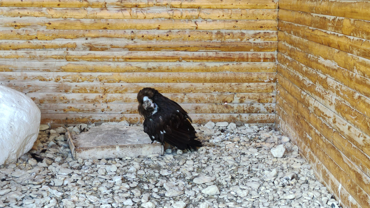 природа животные животный мир фауна зоология биология охрана животных среда обитания содержание животных уход за животными зоопарк нальчик птицы хищная птица гриф черный гриф птица в вольере реабилитационный центр уход за птицами оперение крылья клюв тёмная птица гравий камни подстилка деревянная стена брёвна угол вольера кормовая площадка наблюдение экология охрана природы дикая природа зооуголок вольер дневной свет лето питомник образовательный туризмПохожие фотографии