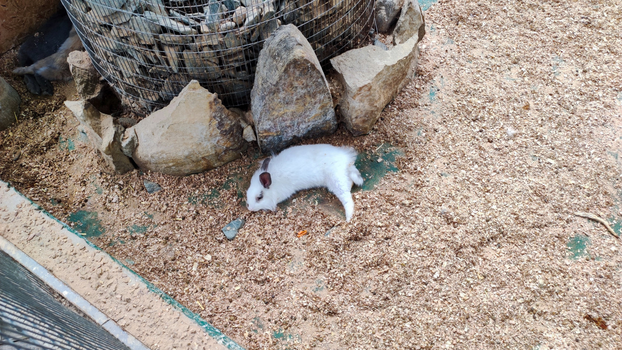 природа животные животный мир фауна зоология биология охрана животных среда обитания содержание животных уход за животными зоопарк нальчик домашние животные кролик белый кролик млекопитающее вольер клетка сетка ограждение подстилка опилки щепа гравий песок камни уличный вольер мини ферма контактный зоопарк ферма сельское хозяйство кролиководство разведение кроликов лежит отдых дворПохожие фотографии