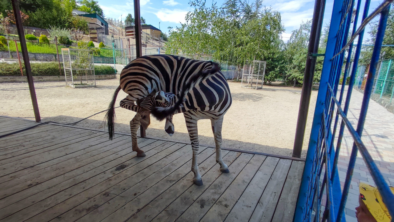 природа животные животный мир фауна зоология биология охрана животных среда обитания содержание животных уход за животными зоопарк нальчик дикая природа млекопитающие зебра равнинная зебра копытные лошадевые поведение животных этология уход за собой чистка самоочистка полосатое животное грива хвост вольер загон ограждение сетка сафари парк наблюдение посетители лето июль дневной свет деревянный настил песок экотуризм образованиеПохожие фотографии