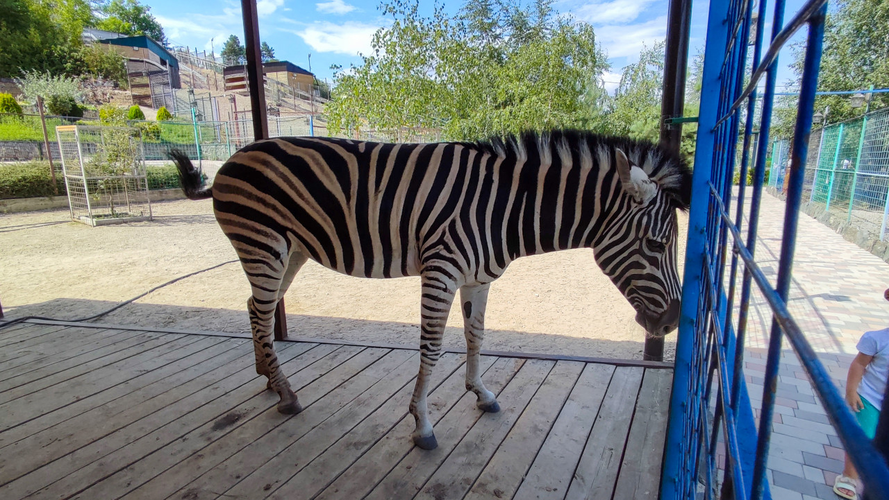 природа животные животный мир фауна зоология биология охрана животных среда обитания содержание животных уход за животными зоопарк нальчик дикая природа млекопитающие зебра равнинная зебра копытные лошадевые полосы черно белый окрас грива хвост копыта вольер загон ограждение решетка сафари парк посетители прогулка наблюдение лето июль дневной свет деревянный настил плиточная дорожка песчаный грунт экотуризм образованиеПохожие фотографии