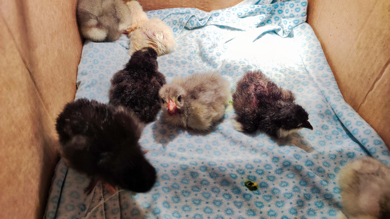 животные птицы домашние животные домашняя птица птицеводство уход за птицей содержание птицы разведение птицы домашнее хозяйство птица цыплята цыплёнок птенцы молодняк выводок фермерство брудер коробка картон подстилка ткань уход выращивание кормление гигиена тёплый свет обогрев лампа пушистый цыплёнок разноцветные цыплята взгляд в камеру сельское хозяйство домашняя фермаПохожие фотографии