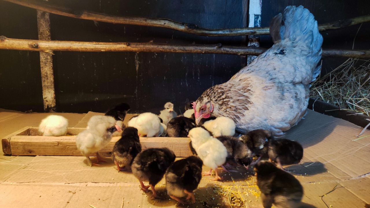 животные птицы домашние животные домашняя птица птицеводство уход за птицей содержание птицы разведение птицы домашнее хозяйство курица наседка цыплята выводок кормление корм зерно клюют кормушка деревянная кормушка курятник птичник брудер обогрев тёплый свет картон настил сено солома уход за молодняком выращивание цыплят ферма сельское хозяйство деревня разведение курПохожие фотографии