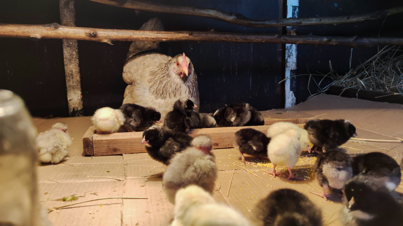 животные птицы домашние животные домашняя птица птицеводство уход за птицей содержание птицы разведение птицы домашнее хозяйство курица цыплята выводок курятник птичник брудер молодняк обогрев тёплая лампа кормление корм зерно крупка кормушка корытце поилка стеклянная поилка картонный настил подстилка солома сено выращивание цыплят ферма сельское хозяйство деревенский бытПохожие фотографии