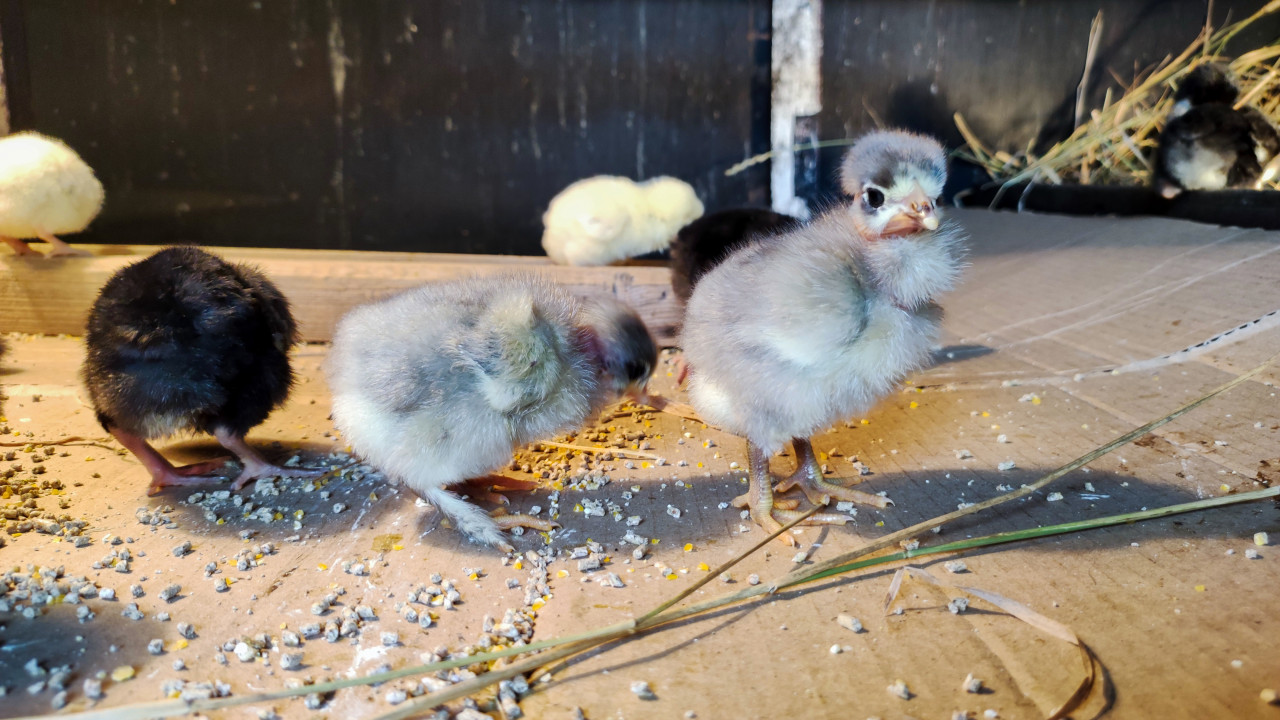 животные птицы домашние животные домашняя птица птицеводство уход за птицей содержание птицы разведение птицы домашнее хозяйство цыплята птенцы молодняк серый цыплёнок чёрный цыплёнок пушистые птенцы кормление корм комбикорм рассыпанный корм крупинки корма деревянный пол настил птичник курятник брудер солома сено ферма мини ферма сельское хозяйство деревенский бытПохожие фотографии