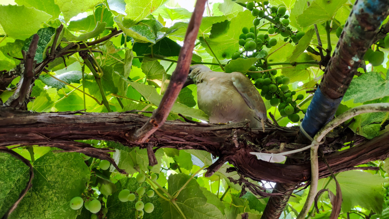 природа животные птицы птица голубь гнездо гнездование орнитология сад виноград виноградная лоза листья винограда горлица дикая птица зелёные ягоды гроздья листва шпалера навес садовая конструкция дача приусадебный участок лето дневной свет тень экосистема биоразнообразие виноградарство садоводство урожай наблюдение за птицами укрытиеПохожие фотографии