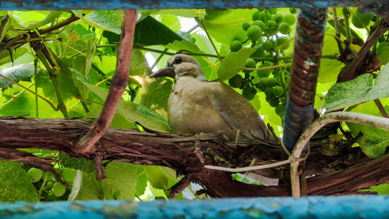 природа животные птицы птица голубь гнездо гнездование орнитология сад виноград виноградная лоза листья винограда горлица портрет птицы крупный план зелёный виноград гроздь ягоды листва шпалера садовая конструкция дача приусадебный участок лето дневной свет экология биоразнообразие виноградарство садоводство урожай защита растений дикая птицаПохожие фотографии