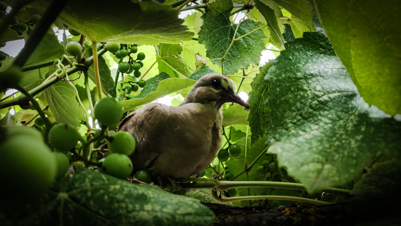 природа животные птицы птица голубь гнездо гнездование орнитология сад виноград виноградная лоза листья винограда дикая птица горлица фауна приусадебный участок виноградник зелёные ягоды гроздь винограда незрелый виноград растительность зелень лето июль тень крупный план низкий ракурс укрытие естественная среда садовые культуры экология сельское хозяйствоПохожие фотографии