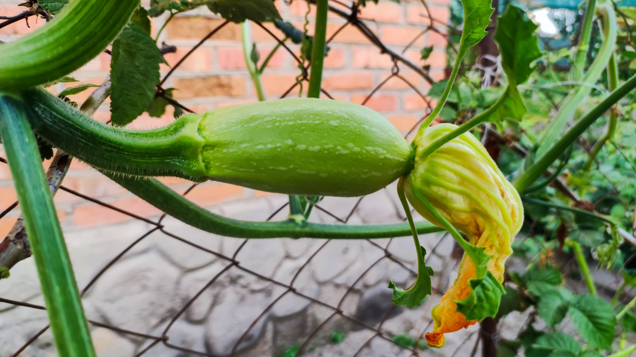 природа растение огород дача приусадебный участок овощи листья стебель выращивание уход за растениями садоводство сельское хозяйство домашний урожай лето сад кабачок тыквенные завязь молодой плод цветок кабачка цветение плеть усики июль дневной свет сетка рабица забор кирпичная стена органическое земледелиеПохожие фотографии