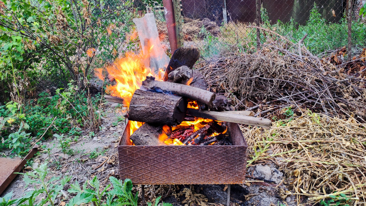 огонь костёр пламя горение дрова древесина угли зола дым утилизация садовый участок садовый мусор хозяйственные работы быт дача сад участок жар поленья жаровня металлическая ёмкость сжигание веток уборка территории сухая трава ветки кусты забор сетка рабица сезонные работы экология безопасность деревенская жизньПохожие фотографии