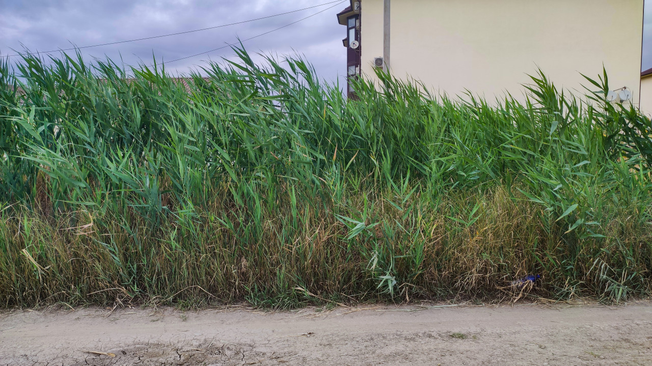 природа растительность растение листья тростник камыш заросли высокая трава сорная растительность зелёный цвет стебли ветер обочина грунтовая дорога тропинка пустырь городская среда пригород жилой район многоэтажный дом фасад здания спутниковая тарелка провода пасмурное небо экология ландшафт дикая природа неухоженная территория летоПохожие фотографии