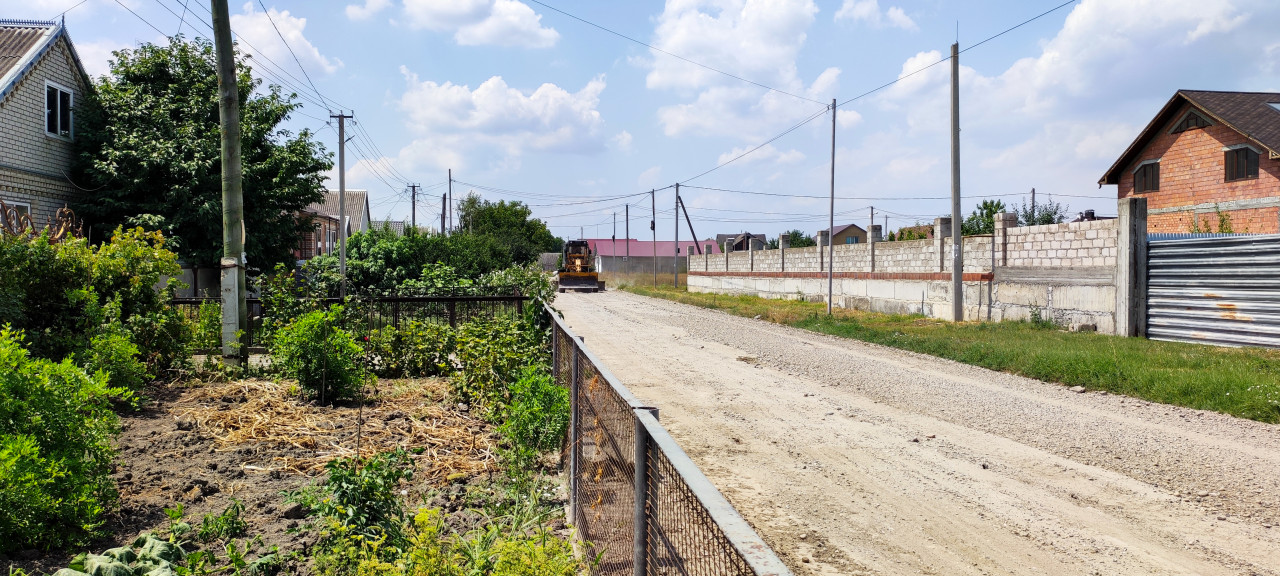 строительство дорожные работы дорога грунтовая дорога щебень улица частный сектор сельская местность инфраструктура благоустройство спецтехника автогрейдер ремонт дороги грунтовая улица пригород грейдер дорожная техника планировка выравнивание пыль электропровода линии связи столбы забор бетонная стена жилые дома огород лето дневной свет небо облакаПохожие фотографии