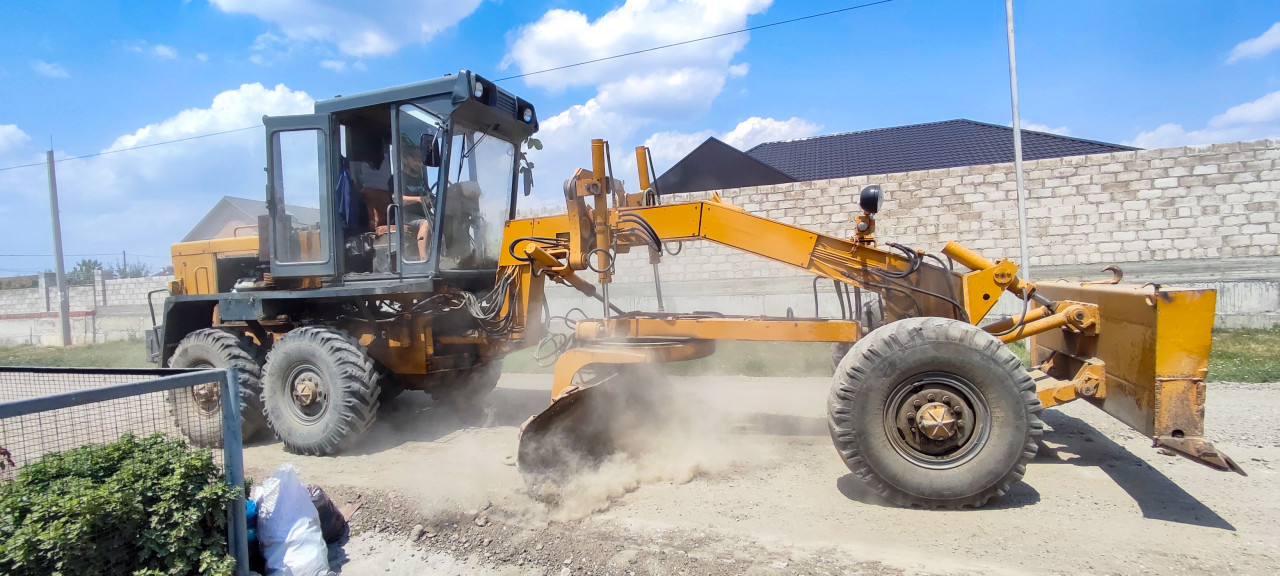 строительство дорожные работы дорога грунтовая дорога щебень улица частный сектор сельская местность инфраструктура благоустройство спецтехника автогрейдер ремонт дороги грейдер дорожная техника выравнивание профилирование отвал нож рабочий орган пыль щебёночная дорога грунтовка ремонт улицы коммунальные работы деревня забор жилые дома провода линии электропередачи дневной свет лето июль техника в движенииПохожие фотографии