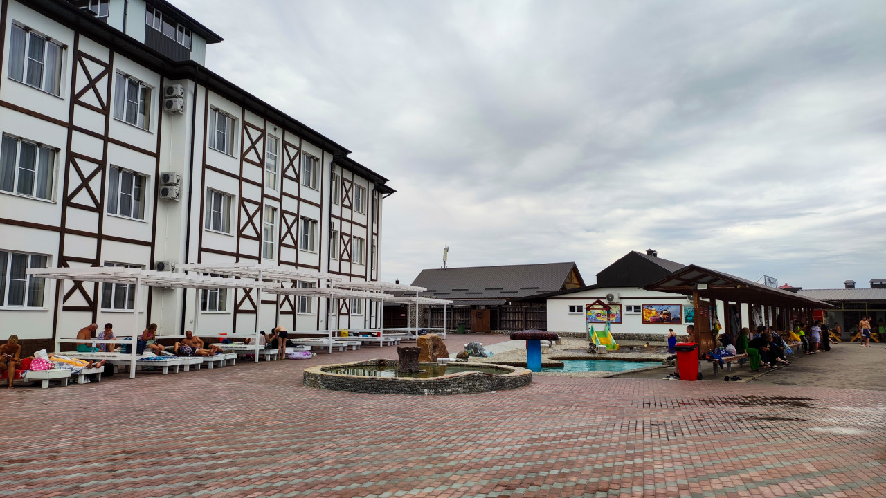 туризм путешествия отдых курорт термальный комплекс инфраструктура сервис общественное место гедуко комплекс отдыха двор корпус фасад окна кондиционеры шезлонги лежаки пергола навес брусчатка плитка бассейн малая чаша вода загар релакс люди семейный отдых общественная зона пасмурная погода дневной свет отпуск гостиницаПохожие фотографии
