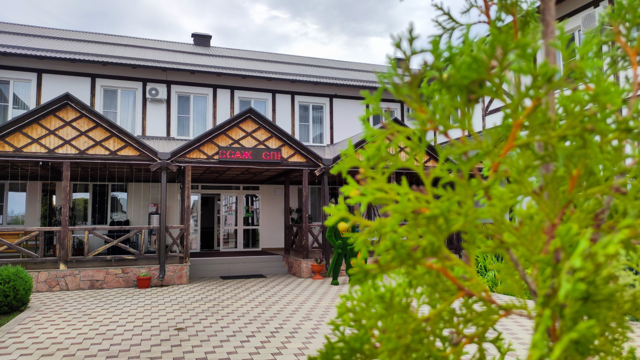 туризм путешествия отдых курорт термальный комплекс инфраструктура сервис общественное место гедуко архитектура фасад вход навес деревянные конструкции перила остекление вывеска световая вывеска красные буквы двор плитка благоустройство озеленение хвойные ветви передний план боке глубина резкости кондиционеры окна комплекс отдыха пасмурная погода дневной свет детали атмосфераПохожие фотографии