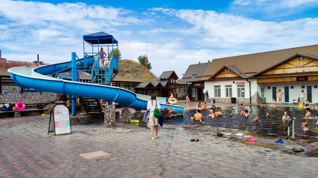 туризм путешествия отдых курорт термальный комплекс инфраструктура сервис общественное место гедуко отпуск термальный бассейн горячий источник открытый бассейн купание люди семья дети водная горка аквапарк развлечения лето дневной свет голубое небо облака плитка зона отдыха раздевалка туалет температура воды 37°C надувной круг безопасность туристическая инфраструктура загородный комплекс досуг спаПохожие фотографии
