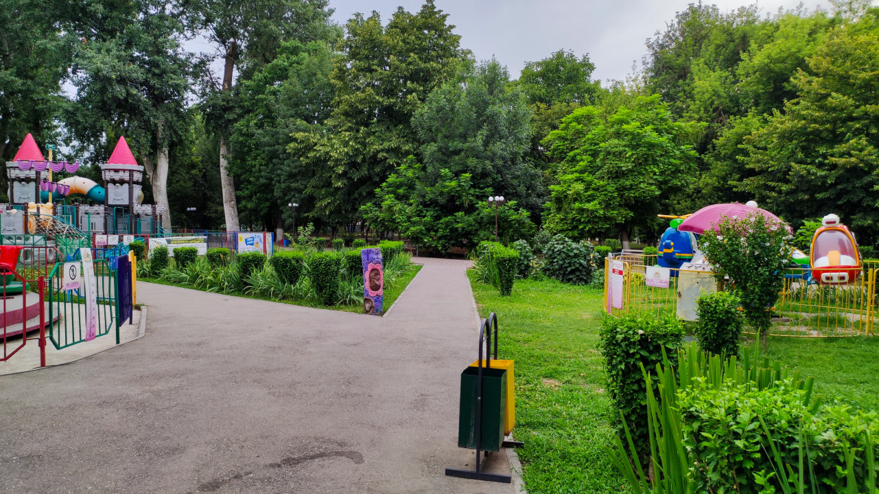 парк городской парк парк развлечений аттракционы детские аттракционы развлечения досуг семейный отдых общественное место городская среда инфраструктура аллея дорожка прогулка зелёная зона благоустройство ландшафтный дизайн газон кустарники деревья фонари лето пасмурно детская площадка игровой комплекс ограждение общественное пространство отдых туризм клумбы озеленение пространство для детейПохожие фотографии