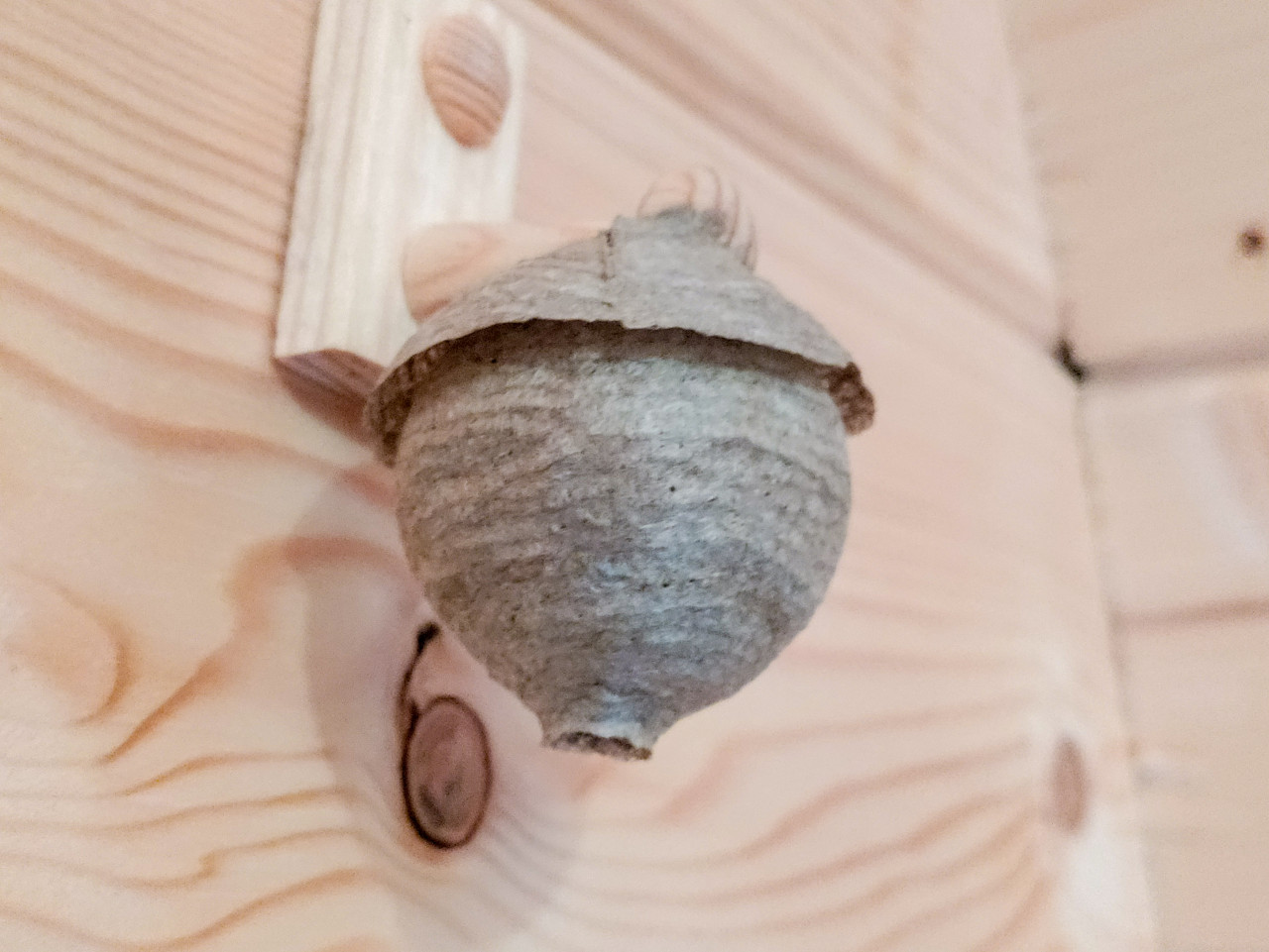 объект помещение интерьер стена деревянная стена древесина вагонка текстура крючок крепление баня сауна осиное гнездо гнездо ос бумажное гнездо осы насекомые вредители опасность безопасность дезинсекция служба дезинсекции удаление гнезда боковой ракурс крупный план макро слоистая структура дача загородный дом хозяйственное помещение профилактика санитарияПохожие фотографии