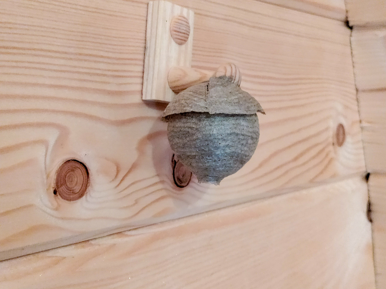 объект помещение интерьер стена деревянная стена древесина вагонка текстура крючок крепление баня сауна осиное гнездо бумажное гнездо гнездо ос осы насекомые вредители дезинсекция борьба с осами удаление гнезда безопасность опасные насекомые деревянный дом дача общий план природные материалы санитария профилактика обслуживание дома хозяйственная постройка сезонные работыПохожие фотографии